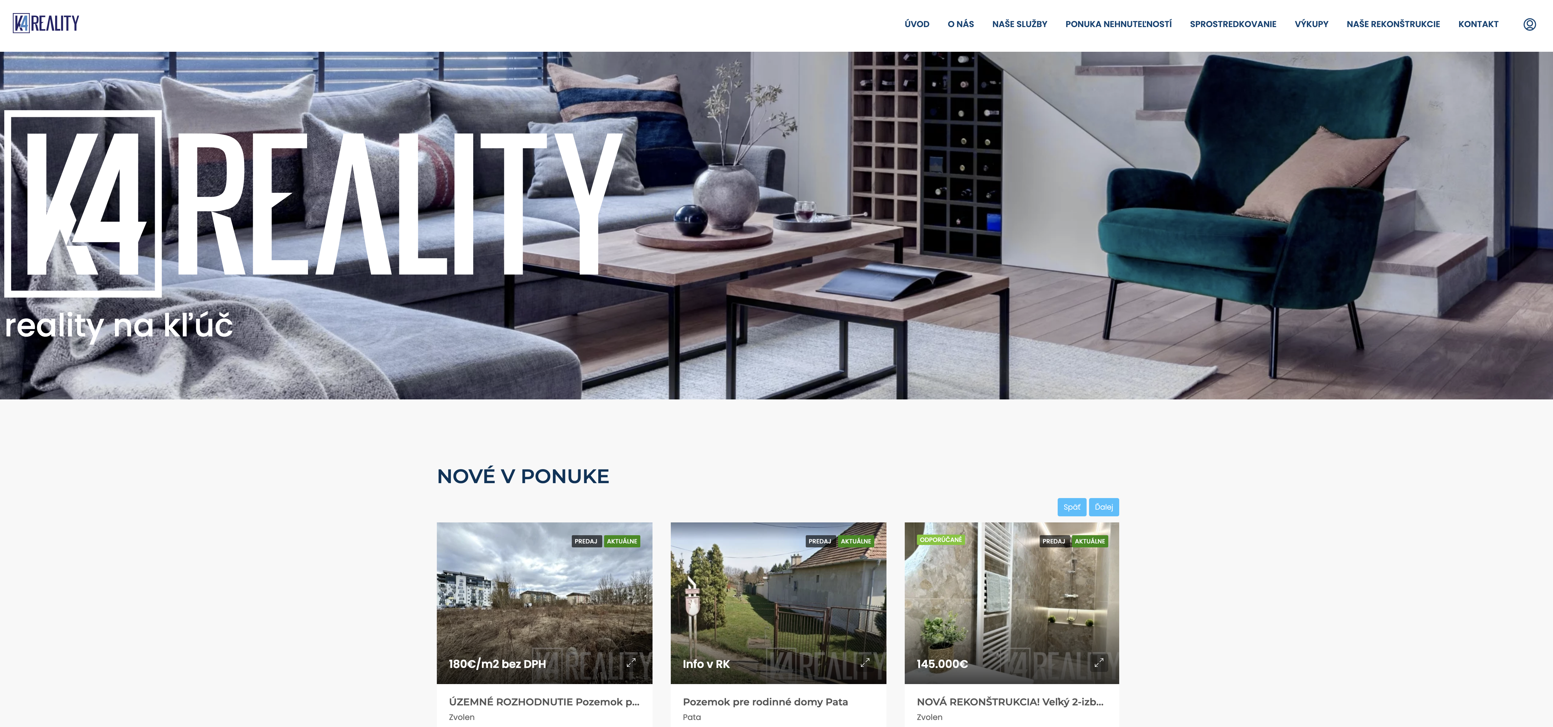 Pre realitnú kanceláriu K4 Reality sme vytvorili modernú webovú stránku a nové logo, ktoré reflektujú dôveryhodnosť, profesionalitu a osobný prístup ku klientom. 🏡✨ Web je navrhnutý s dôrazom na prehľadnú prezentáciu nehnuteľností, jednoduchú orientáciu a komunikáciu s maklérmi. Nová vizuálna identita posilňuje značku a odlišuje ju na realitnom trhu vďaka čistému dizajnu a jasnej komunikačnej línii.