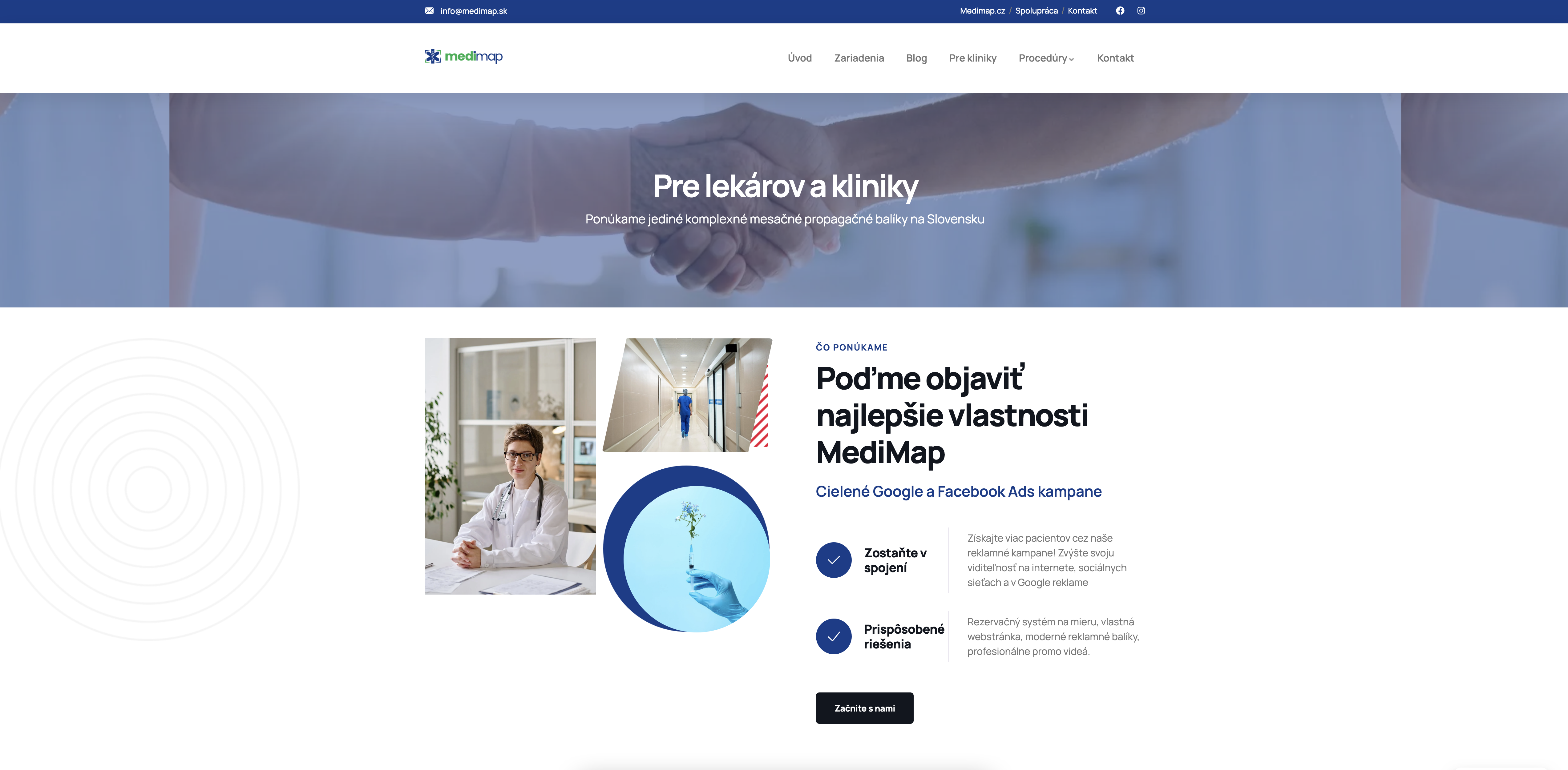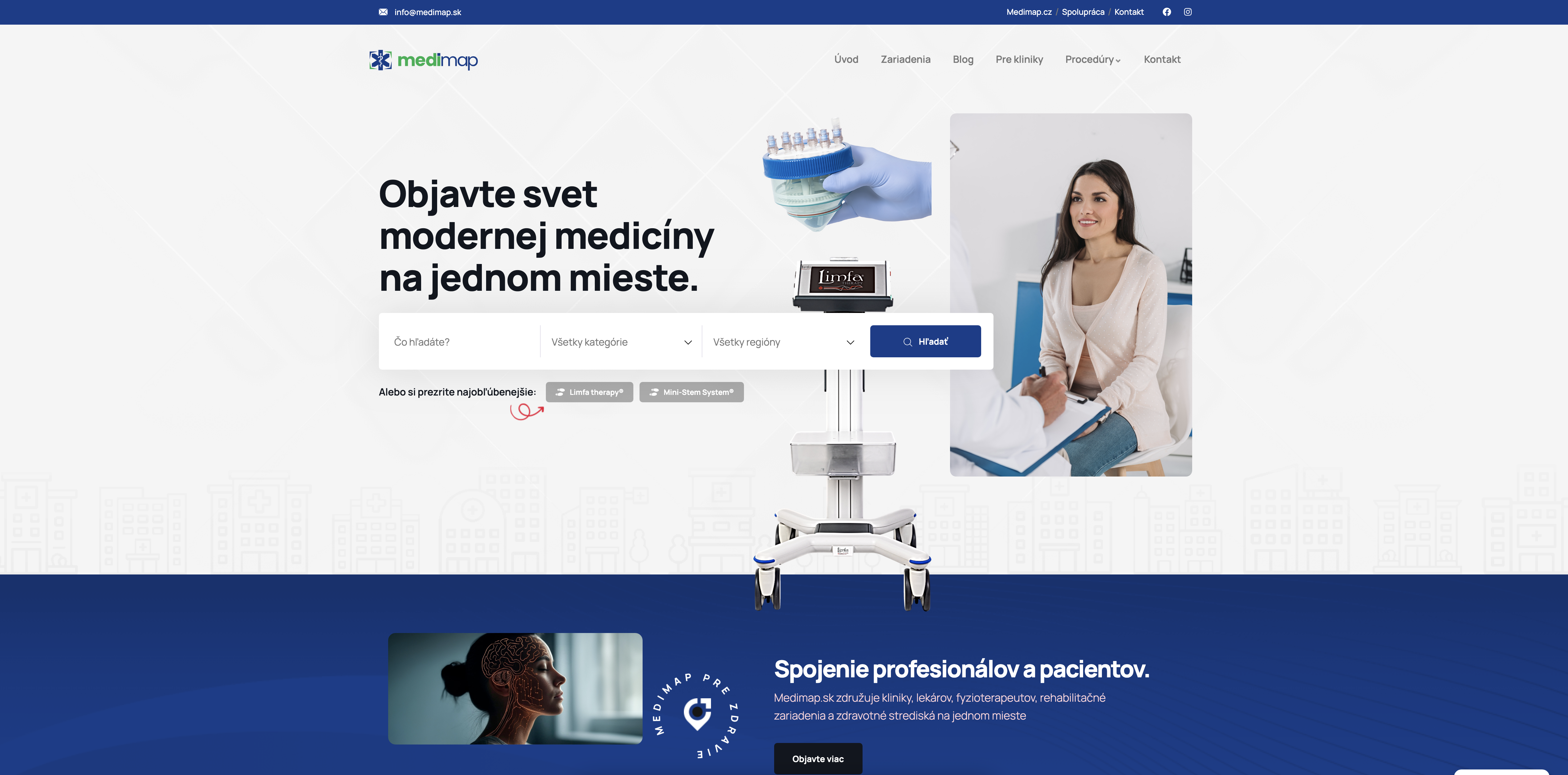 Pre projekt Medimap sme vytvorili moderný webový portál doplnený o profesionálne fotografie a videá, ktorý spája tie najlepšie kliniky, lekárov a zdravotnícke zariadenia na jednom mieste. 🩺💻 Cieľom bolo priniesť prehľadnú a dôveryhodnú platformu, kde si ľudia môžu jednoducho nájsť odborníkov podľa lokality a zamerania. Web sme navrhli s dôrazom na používateľskú skúsenosť, rýchlu navigáciu a vizuálnu kvalitu, ktorá odráža profesionalitu zdravotného sektora.